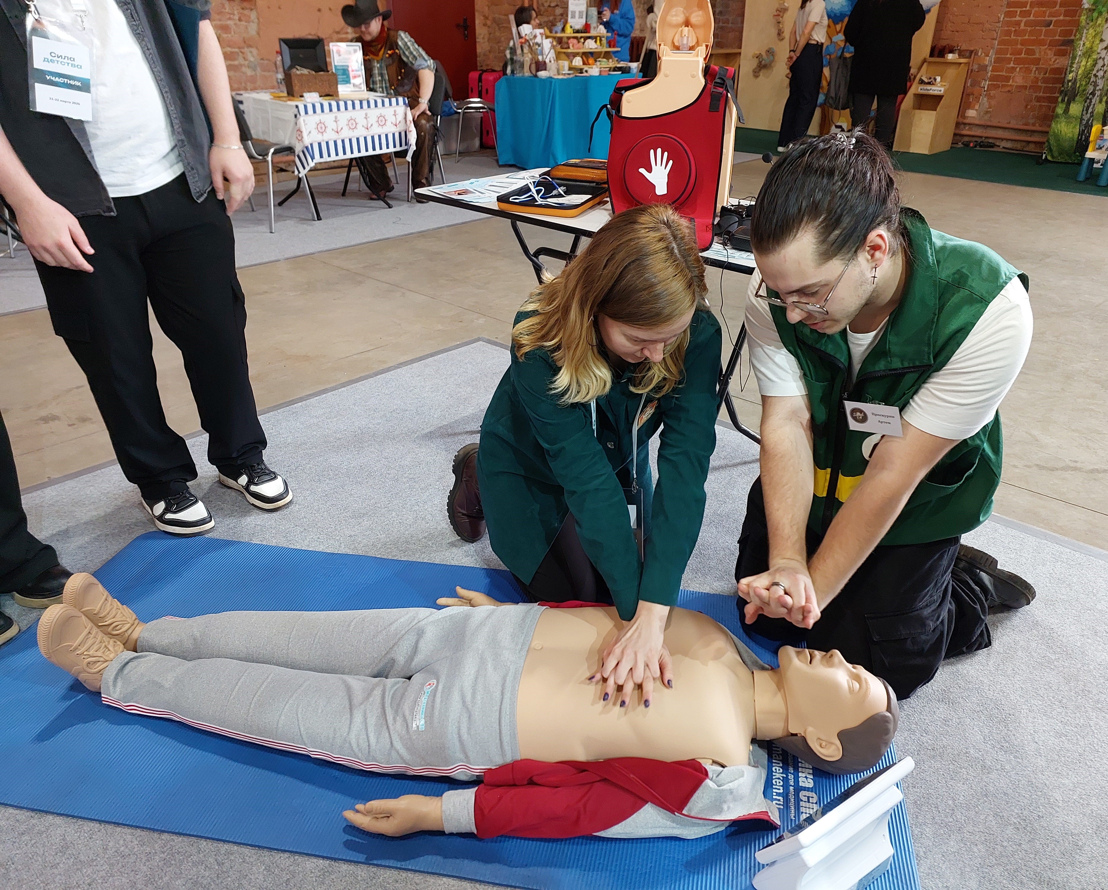 Представители Учебного центра «Первая помощь просто и правильно» от компании «Медтехника СПб» совместно с курсантами ДГЗ «Светоч» провели серию увлекательных мастер-классов по первой помощи, в рамках которых взрослые и дети смогли попробовать свои силы в спасении условных пострадавших. Используя тренажёры компании «Медтехника СПб», гости учились проверять наличие сознания и дыхания у пострадавшего, проводить сердечно-лёгочную реанимацию и приём Геймлиха. Также, участники форума узнали, как переводить пострадавшего в устойчивое боковое положение.