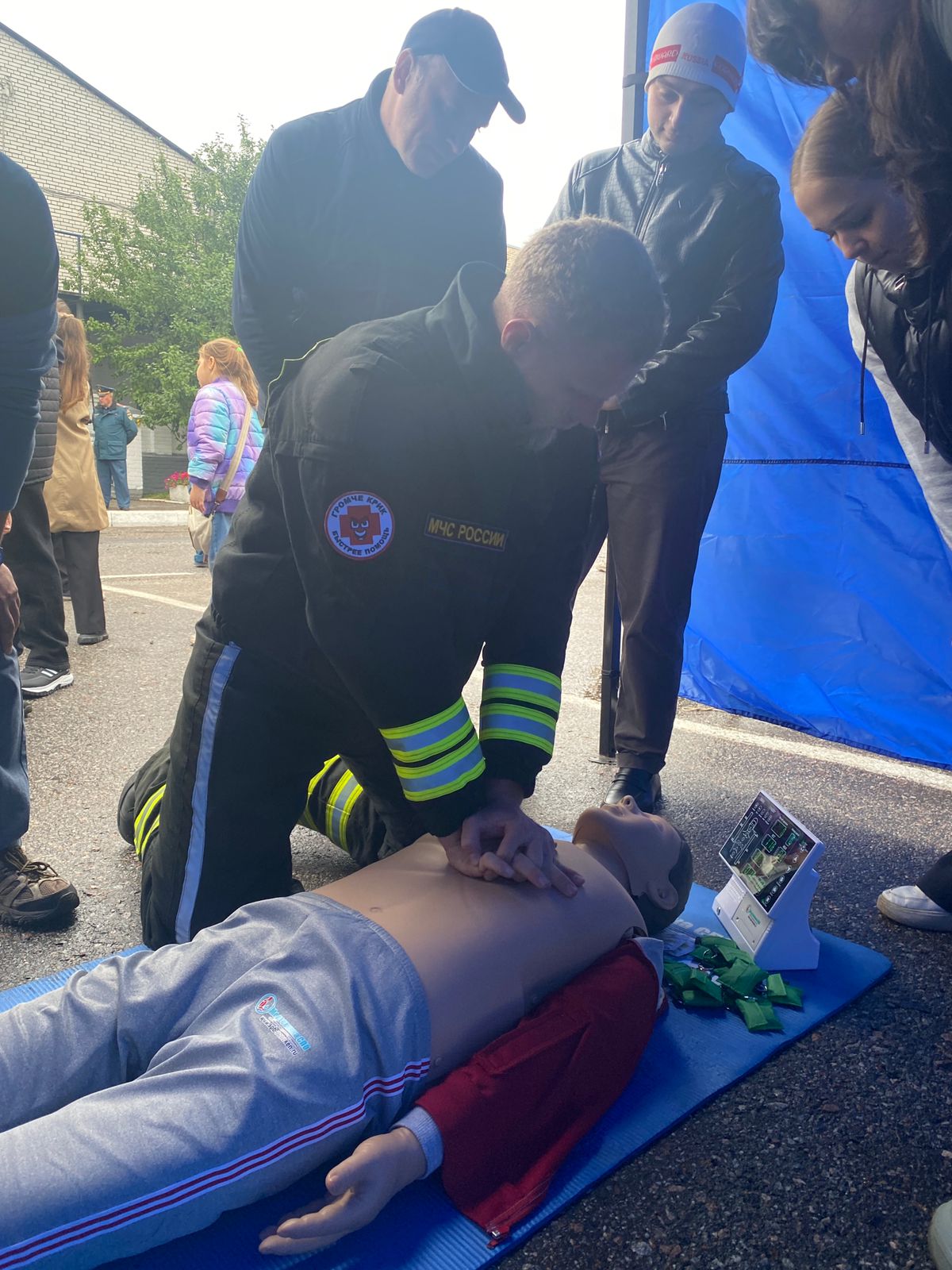 Все желающие попробовали свои силы в спасении условных пострадавших на наших учебных тренажёрах.