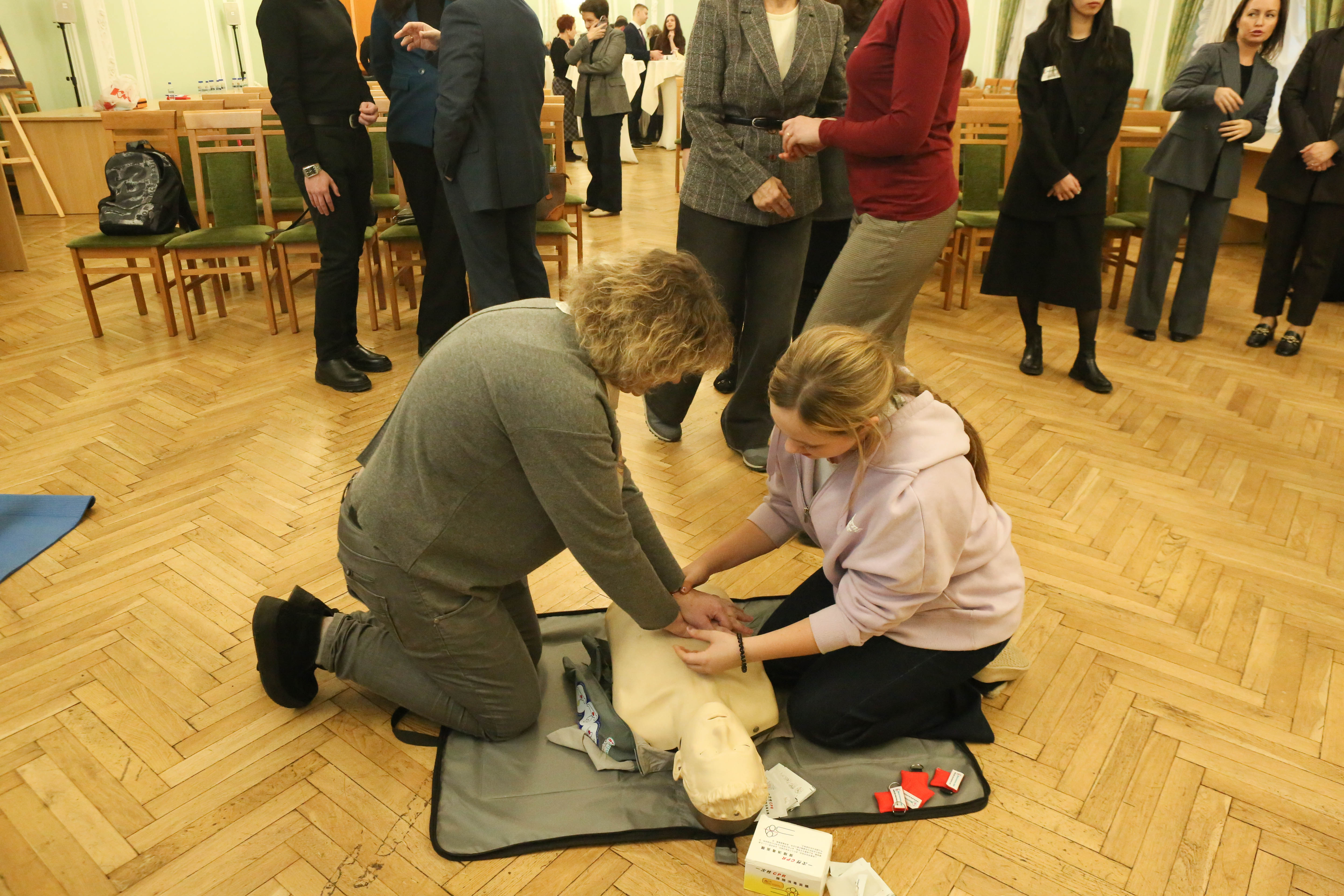 Гости мероприятия смогли отработать полученные знания на практике и попробовали себя в роли спасателей, используя учебные тренажёры компании «Медтехника СПб». В процессе отработки практических навыков они научились оценивать собственную безопасность на месте происшествия, проверять наличие или отсутствие сознания и дыхания у пострадавшего, переворачивать его в устойчивое боковое положение, проводить сердечно-лёгочную реанимацию и приём Геймлиха.