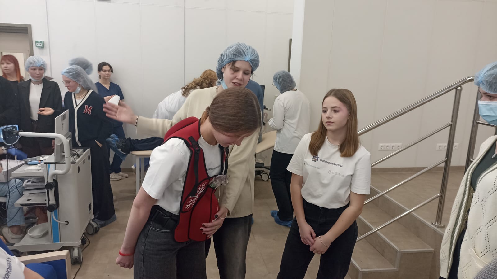 Помимо прохождения мастер-класса по первой помощи, ребята учились работать с аппаратом УЗИ, электронейромиографом (ЭНМГ) и аппаратом ЭКГ, что позволило им почувствовать себя настоящими врачами и глубже погрузиться в специфику выбираемой профессии.