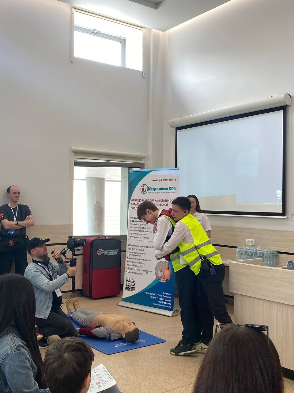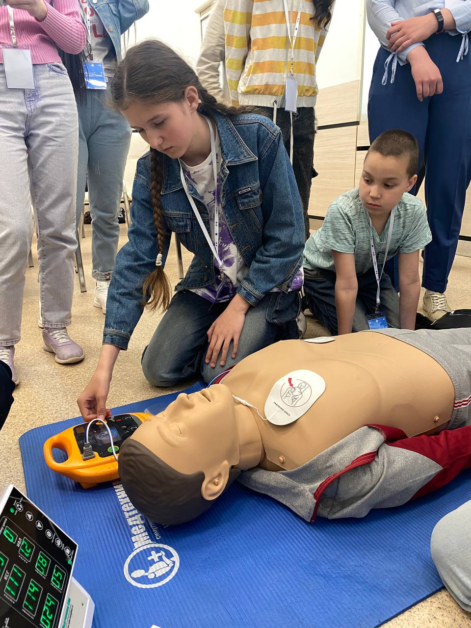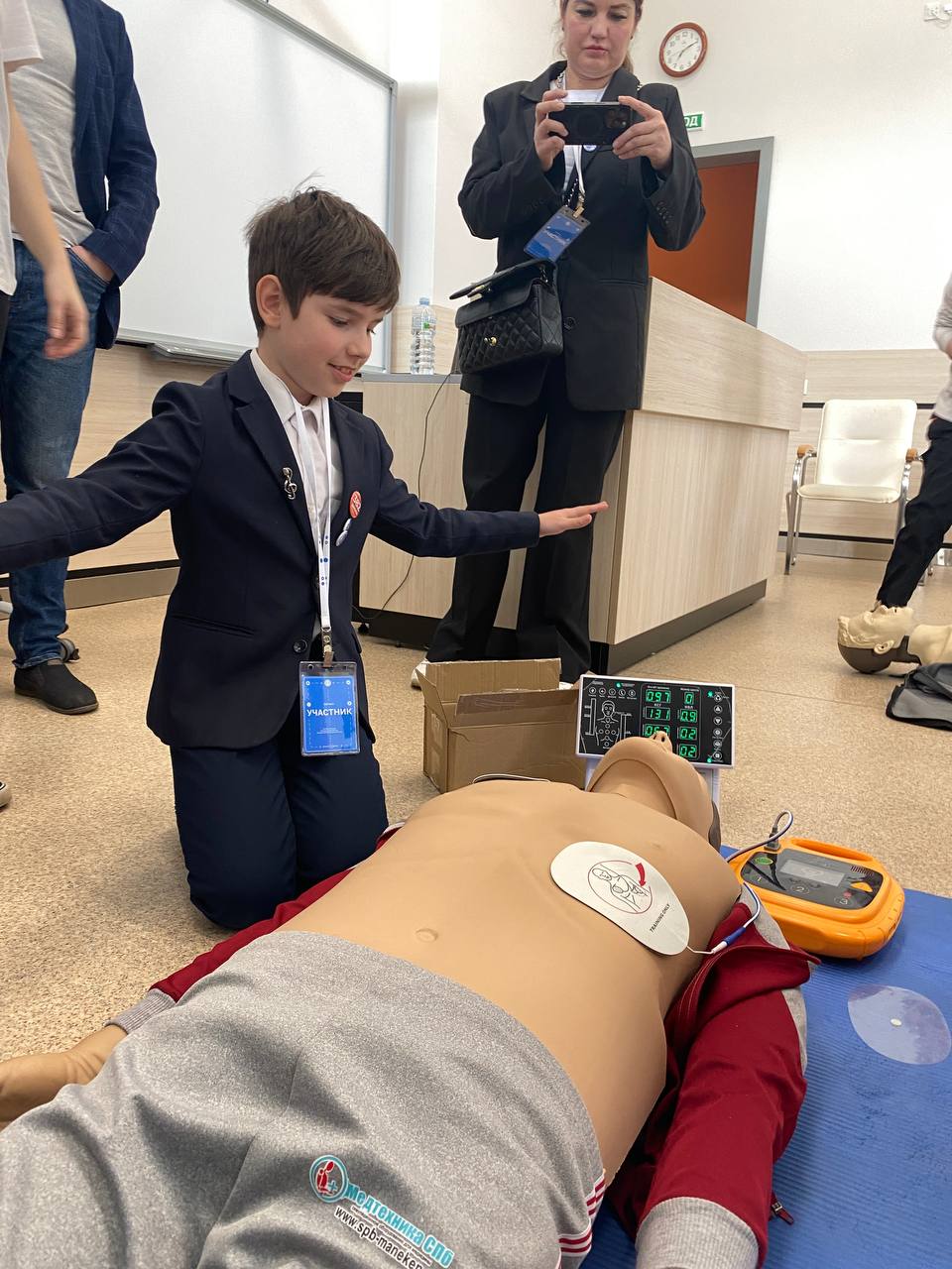 Особое внимание зрителей привлёк тренажёр автоматического наружного дефибриллятора. Напомним, что использование АНД в первой помощи разрешено с 1 сентября 2024 года. Все желающие смогли попрактиковаться в использовании учебного дефибриллятора, в проведении сердечно-лёгочной реанимации и приёма Геймлиха. Все условные пострадавшие были спасены!